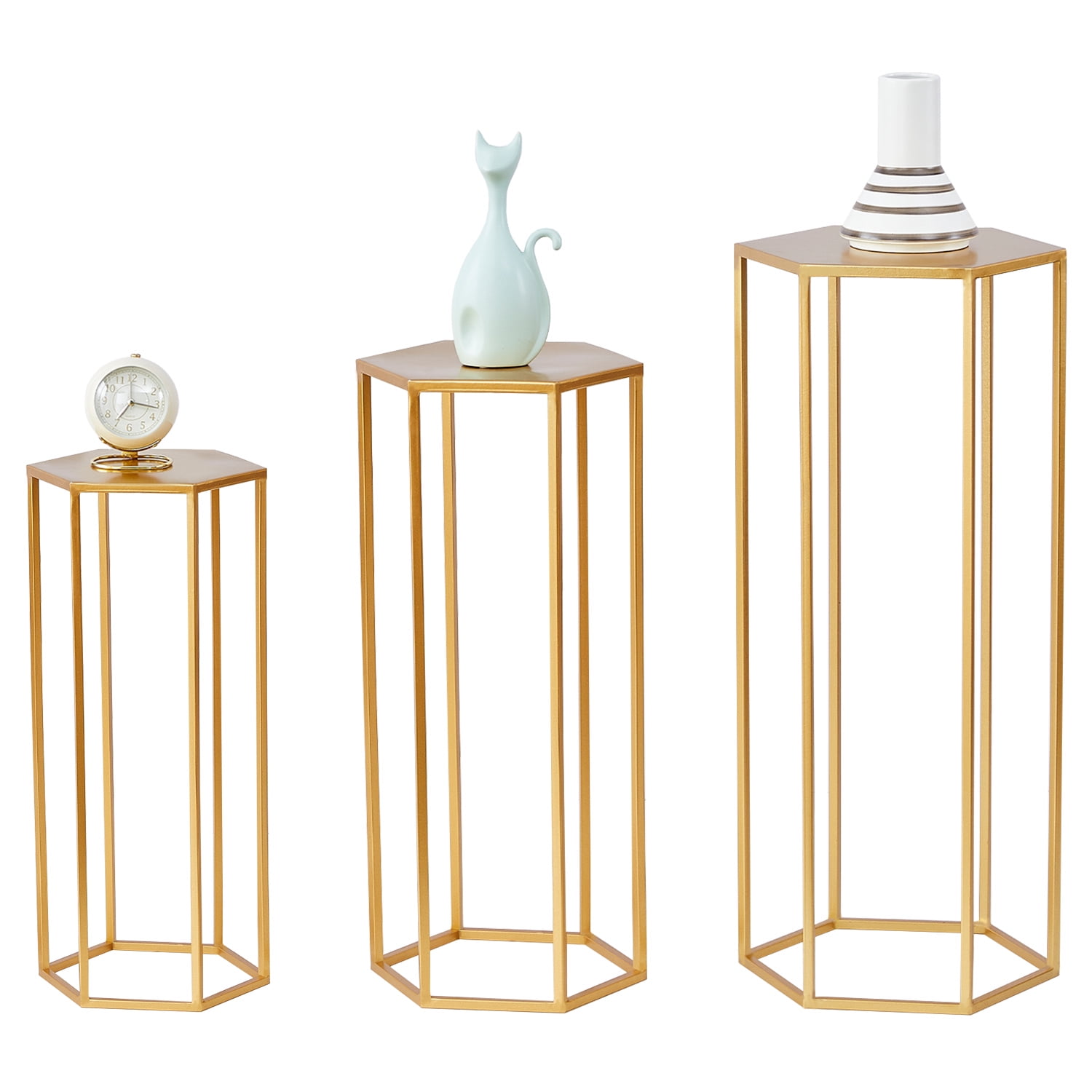 Set Of 3 Metal Plant Stand Nesting Display End Table Hexagon Design Pedestal Stand Tall Plant Stands Indoor Flower Pot Holder For Living Room Patio Garden Decor Walmart Com