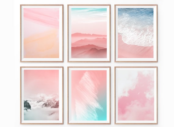 Pink Wall Art Set Of 6 Pink Wall Decor Pastel Poster Set Pastel Wall Decor Pink Clouds Positive Prints Girly Wall Decor Blush Pink Etsy